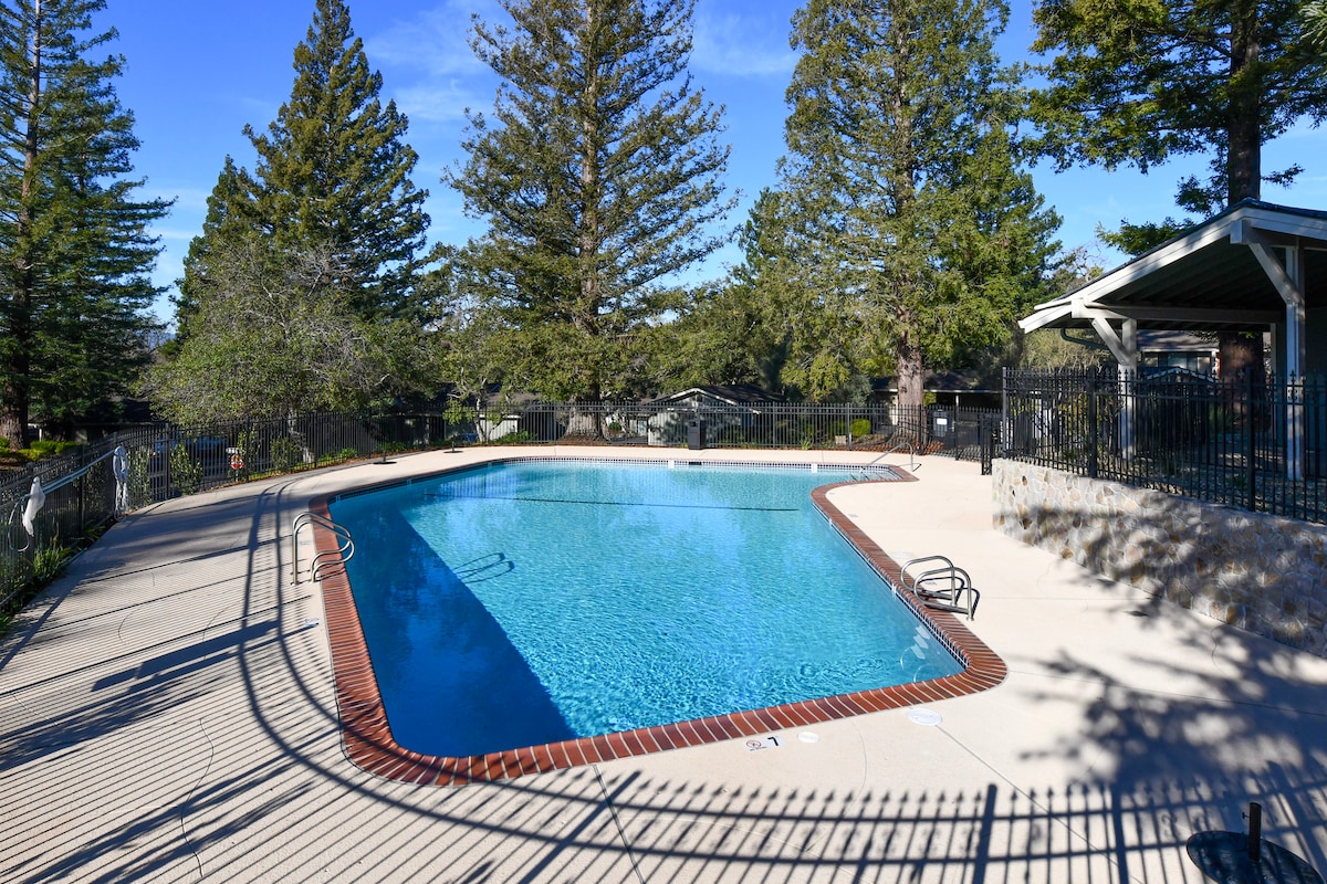 Newly remodeled serene 2-bedroom, 2-bath ensuites upstairs condo overlooking the 8th hole tee box of the South Course at Silverado Resort. Thoughtfully designed for comfort and flexibility, the family and pet-friendly home sleeps up to 6 guests with a convenient pull-out sofa—ideal for families, couples, golf getaways, or friends exploring Napa Valley. The unit is walking and biking distance to Silverado Resort, making it easy to access dining, golf, spa amenities, and scenic resort paths.