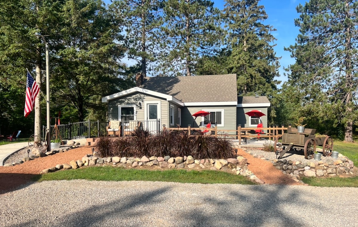 Reposant sur Star Lake et dans les bois du nord, cette micro-maison offre la tranquillité dont vous avez besoin pour décompresser complètement. La cabane Sasquatch Shores se trouve sur Star Lake, un lac tranquille qui vous donne la tranquillité et la tranquillité que vous voulez. Observez le coucher de soleil sur le quai ou faites une queue dans l'eau ! La cabane se trouve également directement sur le sentier du VTT. Le principal offre un lit King Size et la chambre d'hôtes offre un lit Queen/Twin Loft. Il y a également un canapé sectionnel comme option de couchage !