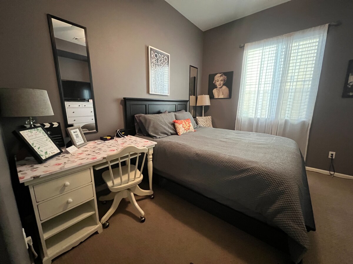 Là où la magie du cinéma se produit, niché au cœur de Santa Clarita, se trouve une charmante maison d'hôtes conçue avec tout le confort de votre propre maison, y compris une baignoire pour profiter et se détendre après une longue journée. L'emplacement est essentiel, et cette belle maison d'hôtes se trouve à quelques minutes de l'autoroute 14, des sentiers de randonnée, des restaurants, de Six Flags Magic Mountain et des lieux de tournage. Cette suite attenante a été récemment rénovée avec tout le mobilier neuf, une entrée privée et séparée avec une place de stationnement désignée.
