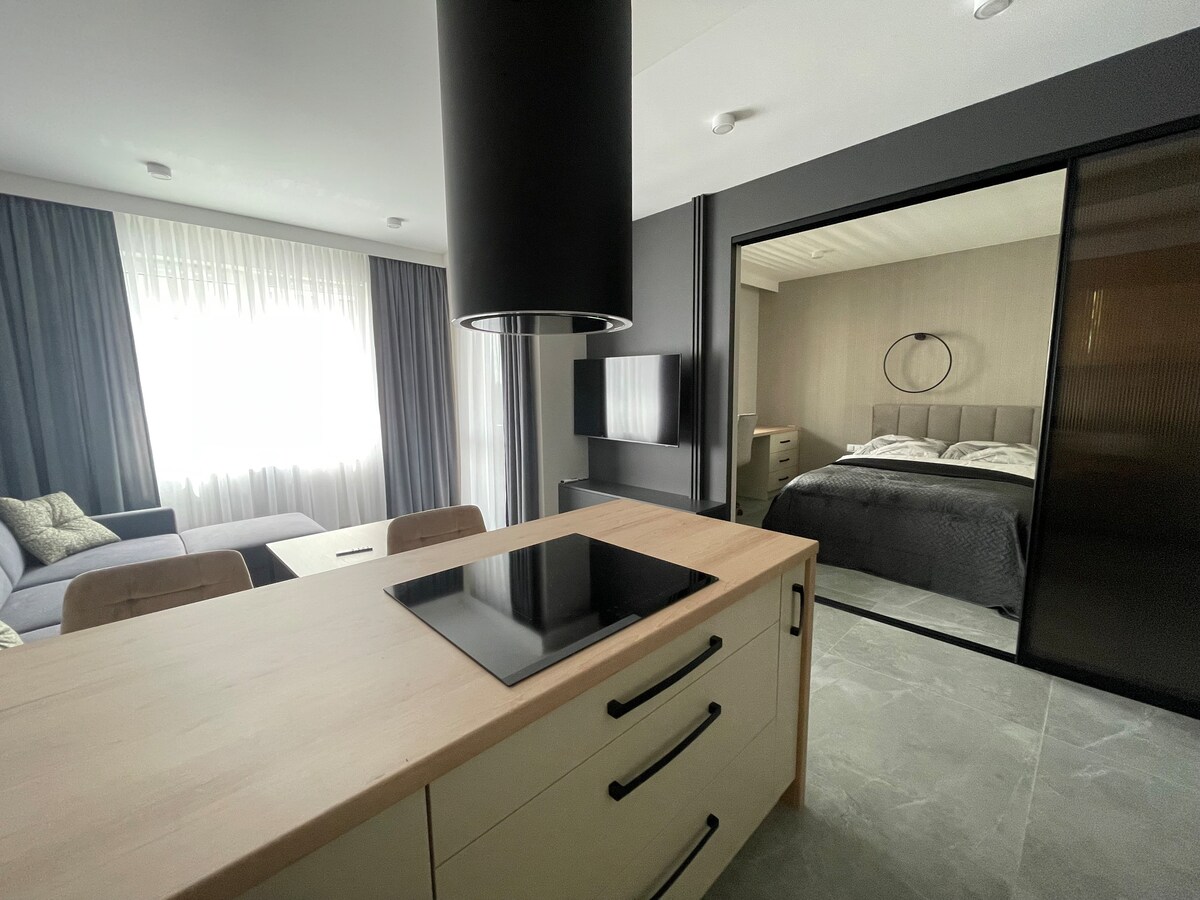 Un endroit élégant pour séjourner au cœur de Rzeszów. Parfait pour les séjours en famille et d'affaires. Pour un maximum de quatre personnes. L'appartement dispose de la climatisation séparée dans le salon et dans la chambre. Deux téléviseurs haut de gamme avec télévision par câble, Netflix et Amazon Prime Video. Salle de bain avec douche. Le prix comprend les serviettes, les produits de nettoyage, le café, le thé, l'Internet sans fil, le lave-linge/sèche-linge, le fer et la planche à repasser. Arrivée après 15 h, départ avant 11 h. Il est interdit de fumer et d'organiser des fêtes.