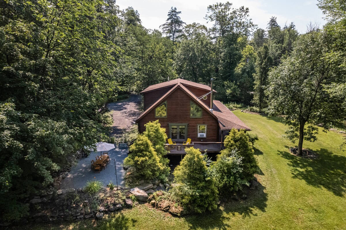 Cabane en rondins | Foyer • Ruisseau • Sentier O&W Rail