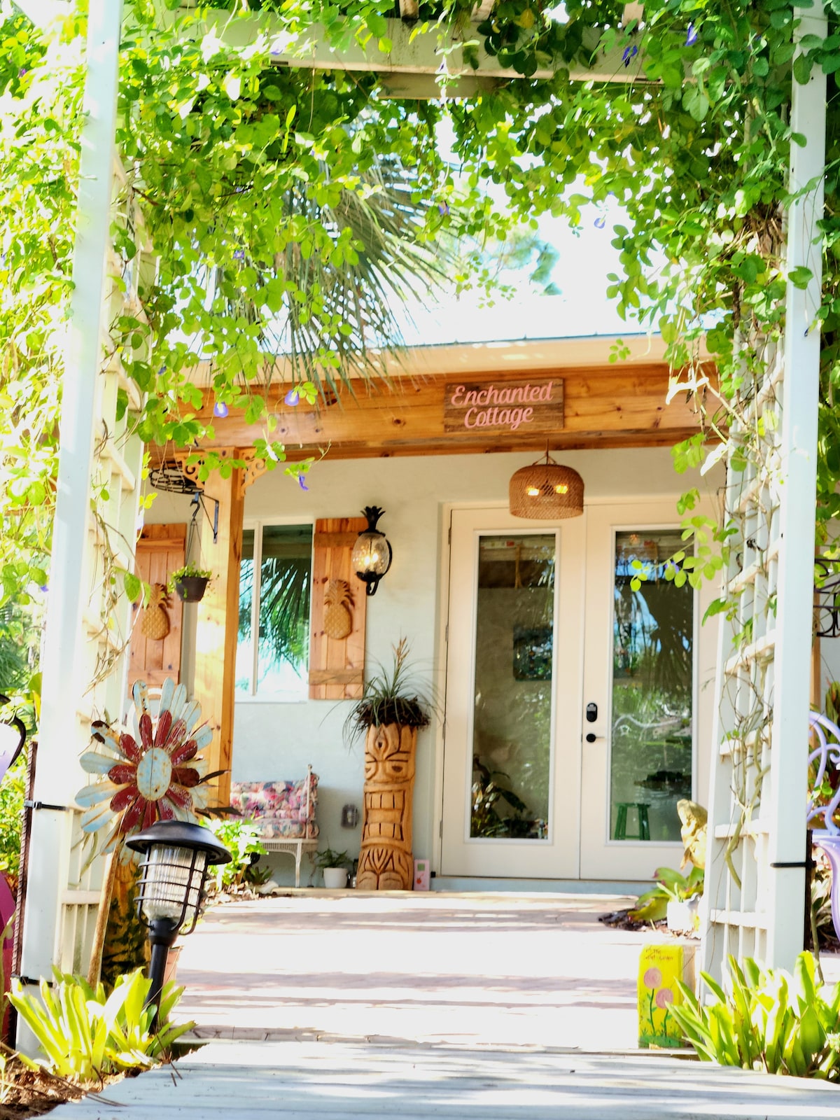Découvrez The Enchanted Cottage, une retraite sereine de style Old Florida des années 1950 nichée dans un jardin botanique tropical luxuriant et relaxant. Que vous sirotiez votre café du matin dans l'un de ses charmants recoins extérieurs ou que vous vous détendiez avec un verre de vin sous les étoiles, chaque instant ici promet d'être inoubliable. Découvrez la magie de Port Saint Lucie comme jamais auparavant dans The Enchanted Cottage. Visitez notre boutique de cadeaux et notre pépinière. La boutique regorge de trésors et de plantes uniques faits à la main