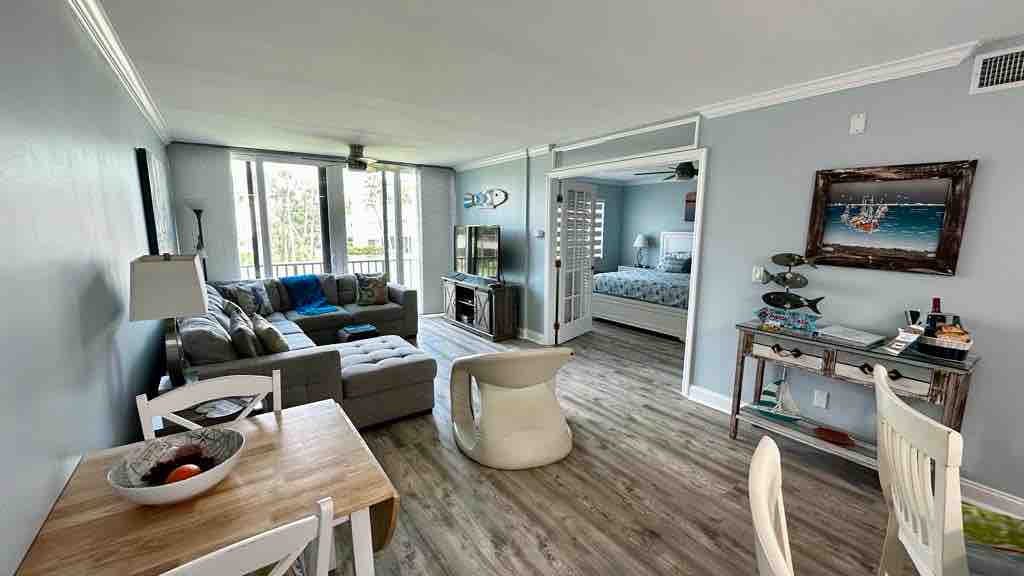 Cette copropriété en bord de mer est située sur la belle île de Hutchinson avec les équipements du complexe hôtelier Marriott ! L'appartement a été joliment décoré avec une nouvelle décoration de plage. Vous aurez une vue magnifique sur l'océan, et vous aurez également un accès optionnel aux équipements du country club du complexe Marriott, tels que le golf. Tout le mobilier est haut de gamme, y compris les meubles de salon en duvet dans lesquels vous pouvez vous enfoncer, et de beaux lits avec des matelas à plateau-coussin. Tous les clients ont un accès complet aux restaurants et aux marchés Marriott.