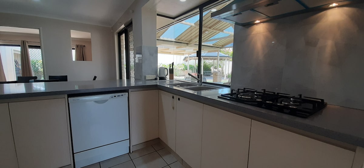 Il s'agit d'une maison moderne, récemment construite avec un décor minimaliste de bon goût. Grand espace de vie ouvert avec Wi-Fi rapide gratuit pour profiter de vos services de streaming Netflix/Stan sur la grande télévision connectée. Cuisine spacieuse équipée de tous les éléments essentiels pour que vous vous sentiez comme chez vous. Deux chambres privées avec lits Queen Size sont disponibles exclusivement pour votre usage pendant votre séjour. À proximité des hôpitaux Fiona Stanley et Murdoch, des magasins Cockburn Gateway et à 20 minutes du CBD.