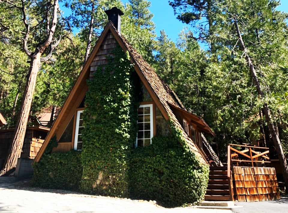 The Far Out is a classic A-frame cabin nestled in the beautiful woods of Idyllwild in the San Jacinto Mountains. This mountain retreat sits on an acre of land, complete with a 1200 sq ft wooden deck and semi-sunken hot tub. The interior décor is impeccably curated, blending vintage character with modern design for a distinctly cool cabin vibe. Set far back from the road, the cabin and the grounds offer a magnificent private space for a relaxing getaway. Beauty abounds at The Far Out!