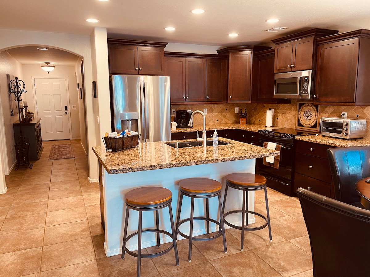Les célèbres restaurants du centre-ville de Gilbert se situent à proximité. Cette maison est vraiment un paradis du divertissement. La réflexion mise dans le thème vous surprendra. La cour arrière comprend un jeu de cornhole, une table de hockey sur table, un foyer, un barbecue, un spa de nage, un jacuzzi, des guirlandes lumineuses, une pergola avec coin salon et bien plus encore. Trois chambres, 2 lits King Size et 2 lits complets. Grandes téléviseurs à écran plat, cheminée, salle familiale, salle à manger, salon, salle de jeux, 2 salles de bain et demie, lave-linge et sèche-linge, comptoirs extérieurs, comptoirs en quartz.