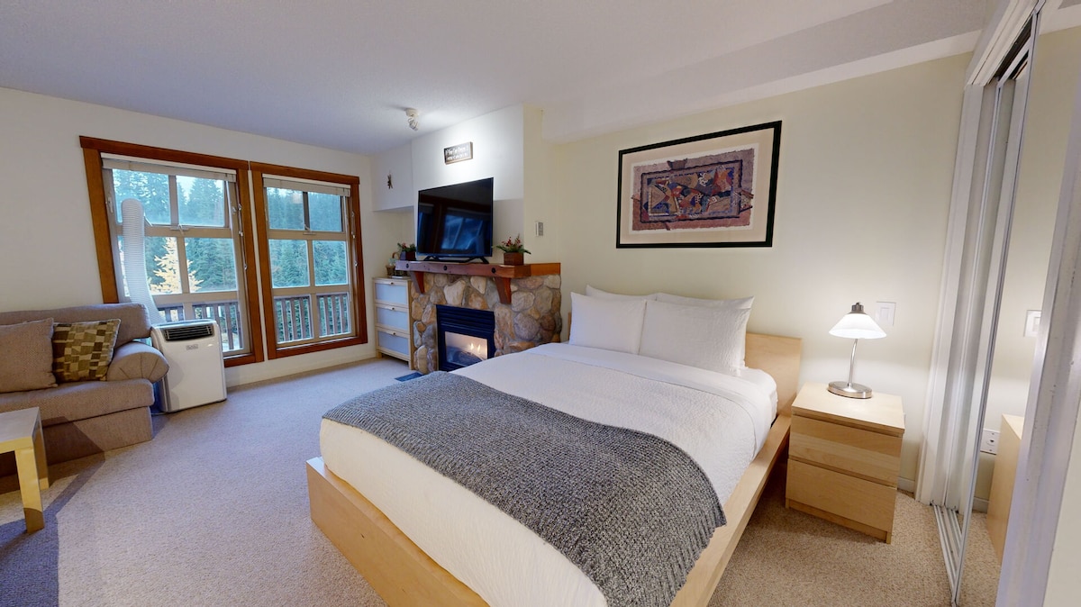 222 in Fireside Lodge est une suite studio spacieuse située au cœur du village, et offre un parking souterrain, un casier à ski/vélo, un accès facile aux remontées mécaniques principales, aux restaurants et aux magasins. Idéal pour un couple, un voyageur solo ou une petite famille. Profitez de regarder des émissions sur la télévision murale ou de vous prélasser dans le jacuzzi partagé entre les invités de Fireside. Cette maison peut accueillir jusqu'à 4 personnes, avec un lit Queen Size et un canapé-lit Queen Size. Veuillez noter qu'il s'agit d'une suite studio et non d'une chambre séparée.