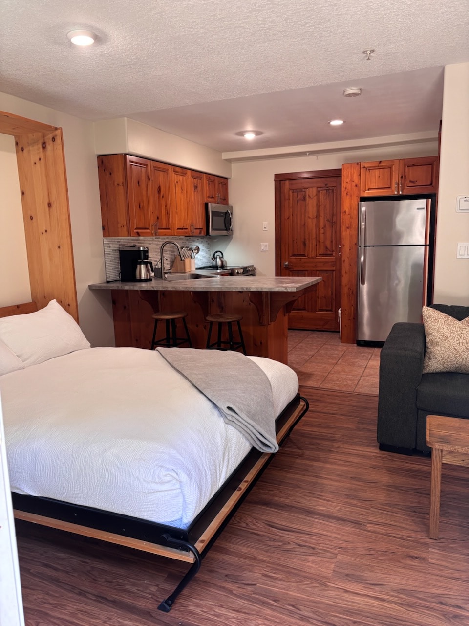 222 in Fireside Lodge est une suite studio spacieuse située au cœur du village, et offre un parking souterrain, un casier à ski/vélo, un accès facile aux remontées mécaniques principales, aux restaurants et aux magasins. Idéal pour un couple, un voyageur solo ou une petite famille. Profitez de regarder des émissions sur la télévision murale ou de vous prélasser dans le jacuzzi partagé entre les invités de Fireside. Cette maison peut accueillir jusqu'à 4 personnes, avec un lit Queen Size et un canapé-lit Queen Size. Veuillez noter qu'il s'agit d'une suite studio et non d'une chambre séparée.