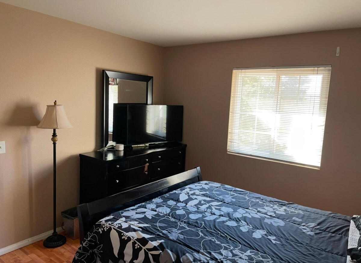 Notre maison est paisible, spacieuse et située au centre de Lockheed, de l'hôpital régional de Palmdale, de Northrop Grumman et de nombreux autres commerces et restaurants. Le logement dispose de deux chambres à coucher et d'une salle de bain complète. La totalité du logement a été récemment rénovée. Il y a un deuxième logement attaché à ce logement qui est disponible séparément sur Airbnb. Il y a un mur partagé, mais chaque logement a sa propre entrée privée. Le seul espace partagé est le garage qui dispose d'un lave-linge et d'un sèche-linge et de chaises longues.