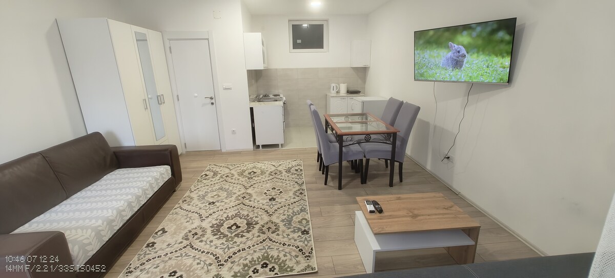 Modern, fully renovated apartment in New Belgrade; just a short walk from Sava Centar and Belgrade Arena. Located on the 1st floor in a quiet residential area with easy access to the highway and city center. Enjoy self-check-in, a comfy king-size bed, a fully equipped kitchen and bathroom, fast free WiFi, and a UHD Smart TV. Designed for comfort and convenience. Late checkout is available for an additional fee, depending on availability.