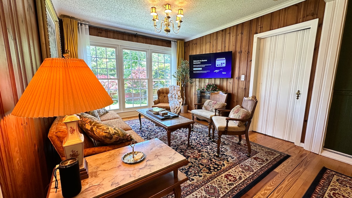 Cette charmante petite maison d'hôtes est idéalement située près du cœur de « Mayberry » (Mt Airy). À distance de marche du centre-ville historique, du musée Andy Griffith et de la station-service Wally's, ce bungalow est niché derrière la maison principale pour plus d'intimité et de calme. Pendant de nombreuses années, la propriété a appartenu à un fabricant de panneaux locaux et c'est dans ce bâtiment séparé qu'il a créé ses panneaux. Certaines de ses créations sont exposées à l'extérieur. L'intérieur a été entièrement rénové.