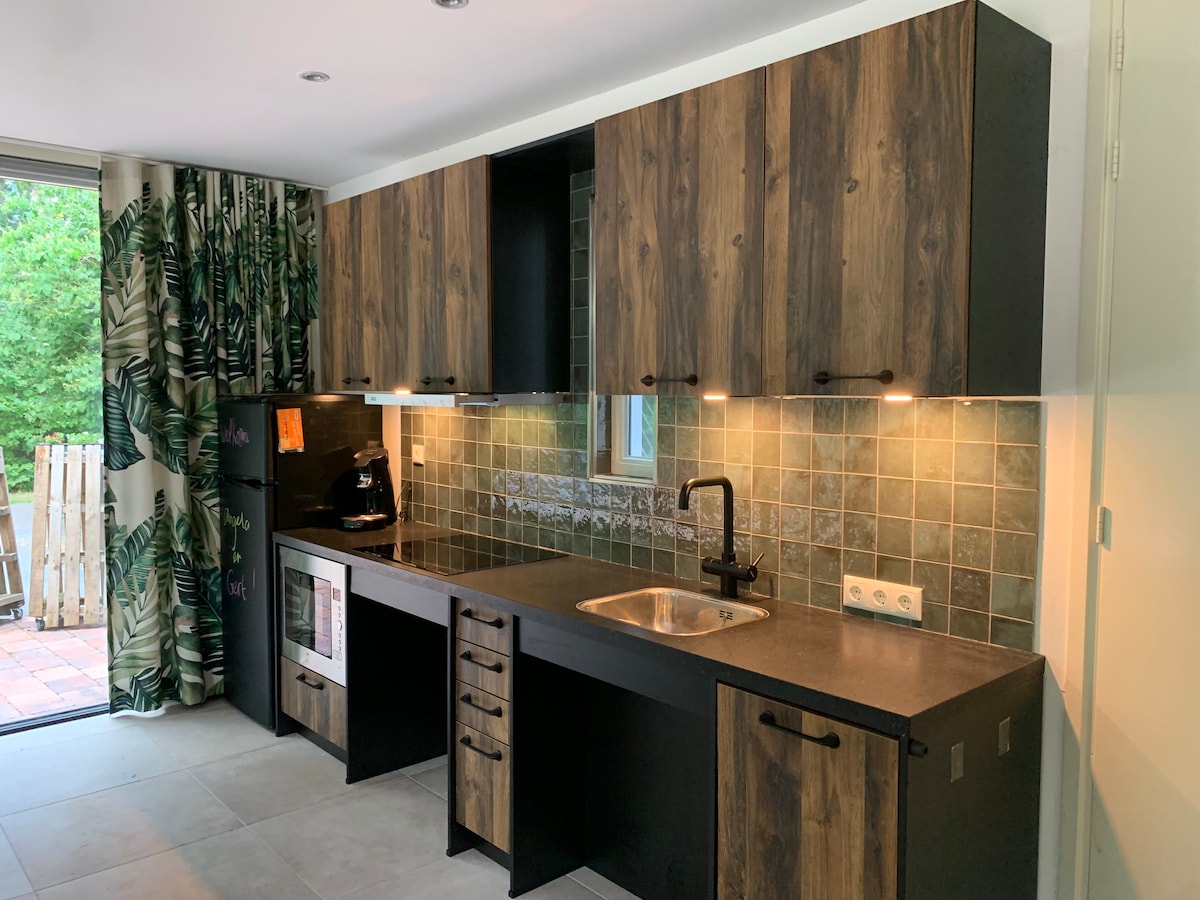 Bienvenue dans le chalet de bien-être apaisant près de la forêt de Veluwe. Il est temps de vous retirer, de vous détendre et de vous ressourcer ? Alors notre élégante Cabine de bien-être avec sauna est faite pour vous ! Détendez-vous complètement en vous allongeant dans le bain chaud. Rechargez vos batteries en utilisant le sauna infrarouge ou profitez de la douche à effet pluie. Éteignez le réveil et réveillez-vous avec une vue sur les magnifiques arbres. La forêt est presque à vos pieds. Faites-vous plaisir.