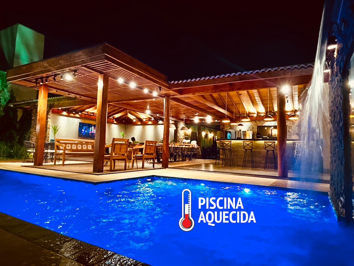 Relaxe com toda a família nesta casa tranquila e segura. Construção nova em terreno de 400 m², com pomar, piscina aquecida e espaço para até 3 carros no quintal. São 3 banheiros (1 suíte, 1 social e 1 externo na área da piscina). A disposição dos quartos: 1 cama de casal na suíte, + colchões extras, 2 beliches e colchões extras nos outros 2 quartos. Cozinha completa com lava-louças, fogão, cafeteira Dolce Gusto, churrasqueira, local pra fogueira todos os utensílios necessários para sua estadia