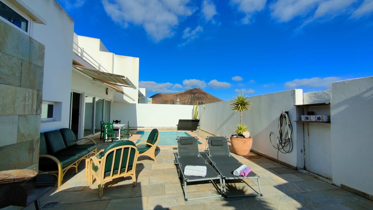 joli et moderne duplex situé dans le village de tahiche dans le centre de l'île à 7 minutes en voiture des plages de costa teguise et à 15 de la plage de famara,avec une grande variété de restauration et de musées à seulement 5 minutes...,piscine privée avec une très bonne température même en hiver en raison de la nouvelle couverture qui si elle reste fermée quand la température n'est pas utilisée augmente assez.... ils ont également la possibilité de louer des vélos,et des cours de surf.