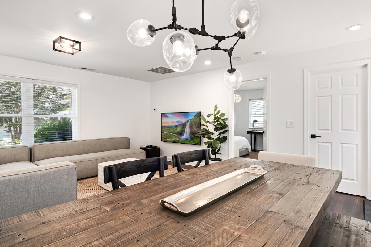 Entièrement rénové et décoré avec goût, cet appartement d'une chambre dispose d'une entrée privée depuis la maison principale et offre une ambiance de ferme moderne. Cuisine entièrement équipée avec nouvelle cuisinière vitrocéramique, grande douche à l'italienne et canapé-lit Queen Size, parfait pour un couple ou une famille. Situé à 9 miles au sud du Bay Bridge, à côté de la Route 8 sur Kent Point Road, cet emplacement est pratique pour les mariages au Chesapeake Bay Beach Club ou à Swan Cove. Accès à une grande piscine creusée inclus.