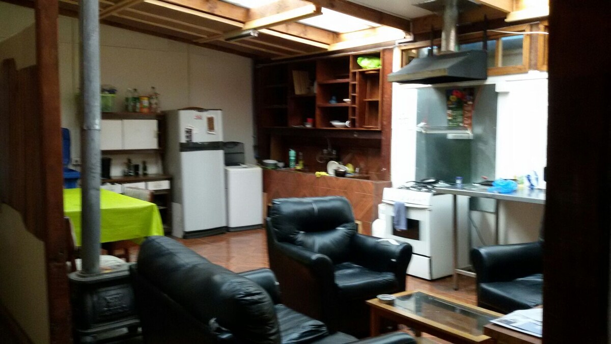 Maison complète et centrale à Talca, à 2 pâtés de maisons de l'Alameda et 3 de la Diagonal. Idéal pour 4 personnes : 2 chambres (double et deux lits simples), 1 salle de bains, salon-salle à manger et cuisine exclusive équipée d'un réfrigérateur et d'autres. Wi-Fi et télévision dans la chambre principale. Comprend le linge de lit et les serviettes de toilette. Parking privé à l'intérieur de la propriété. Pet-friendly Il est interdit de fumer à l'intérieur.
