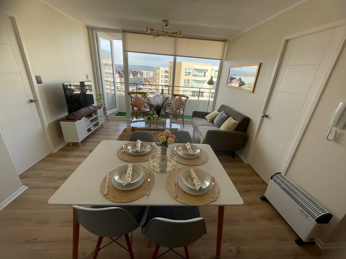 Bienvenue ! Profitez d'un séjour confortable dans cet espace moderne à quelques pas du parc Laguna Redonda. L'emplacement privilégié vous donne un accès facile aux attractions et aux services locaux. Détendez-vous dans le salon élégant, la cuisine entièrement équipée, le parking privé et profitez de la connexion WiFi. Avec des détails soignés et des équipements pour votre confort, c'est votre maison parfaite pendant que vous explorez la ville animée de Concepción. Réservez maintenant et vivez une expérience inoubliable !
