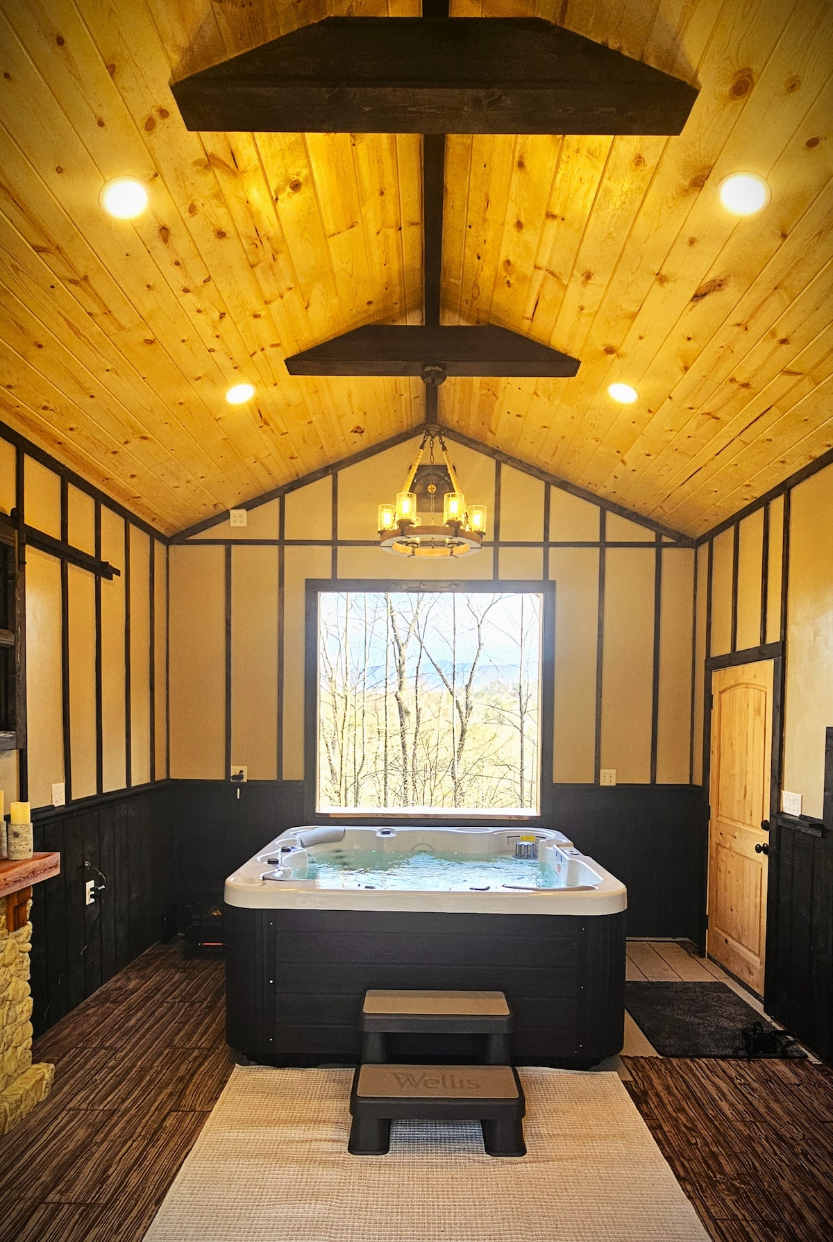 Spa intérieur/extérieur romantique avec sauna + vue sur la montagne