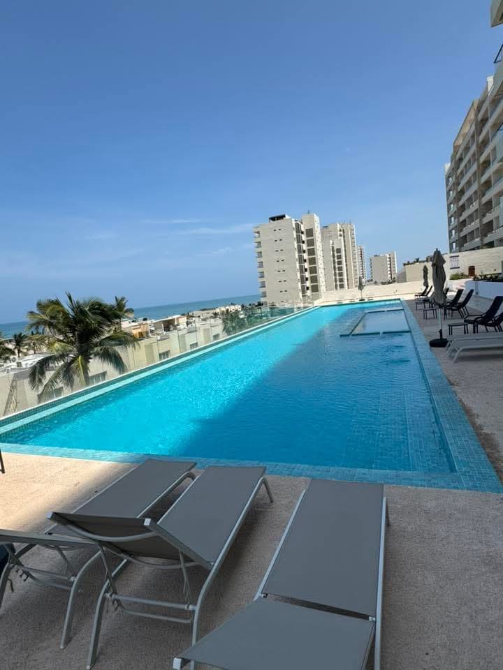 Vistas privilegiadas al mar desde el piso 10 en el fraccionamiento más exclusivo de la zona con acceso controlado y seguridad 24/7. Departamento moderno, amplio y bien equipado con terraza, alberca, asadores y gimnasio. Diseñado para que te relajes desde el primer minuto. Ubicado frente al mar, este espacio es ideal para quienes buscan una escapada tranquila y momentos inolvidables. Playa, estilo, lujo y comodidad en un solo lugar. Recibimos a familias y/o personas por estadías de trabajo
