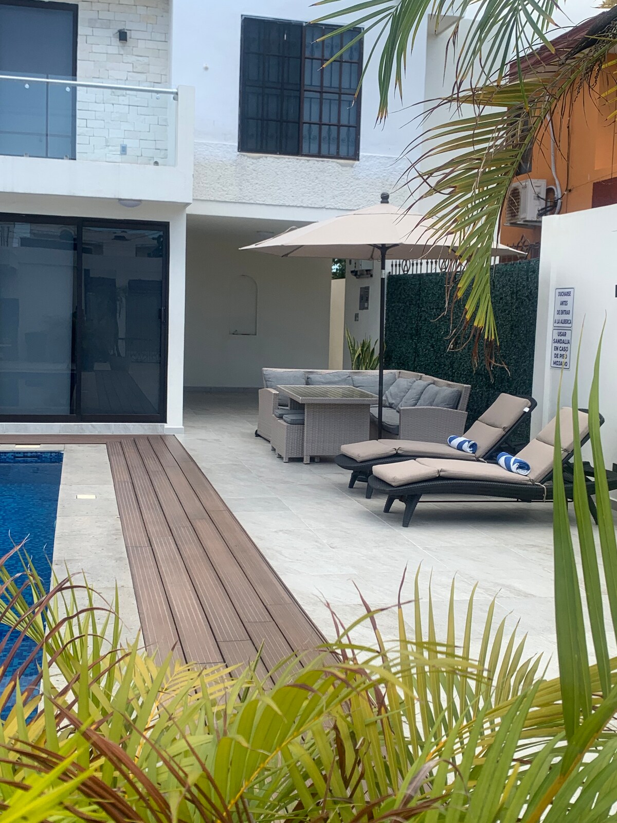 Maison indépendante avec un bel emplacement, à deux pâtés de maisons de l'avenue principale qui vous emmène en voiture au centre de Cd. Madero en 5 min, la plage de Miramar en 15 min, le centre historique de Tampico en 10 min, la lagune del Carpintero en 7 min. Il dispose d'un garage couvert, d'une chambre avec salle de bains complète, d'un lit double, d'un Mini Split, d'un espace de travail, d'Internet et d'une télévision intelligente de 43 pouces. Salle à manger avec ventilateurs de plafond et un canapé-lit avec option pour deux personnes supplémentaires, cuisine et lave-linge.