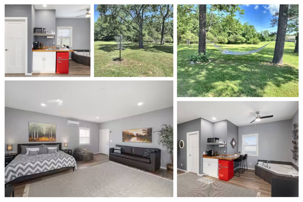 Profitez d'une expérience moderne et élégante des années 50 dans ce logement central. Séjournez à quelques minutes seulement du Branson Landing, des spectacles et des divertissements. Allez en ville, jouez au lac ou restez à l'intérieur et détendez-vous dans un cadre paisible et privé. Si vous avez besoin de faire quelques courses ou de prendre une collation rapide, vous êtes à seulement 5 minutes de Target ou de Chic-fil-a. Bien sûr, votre ami à fourrure bien élevé est le bienvenu !