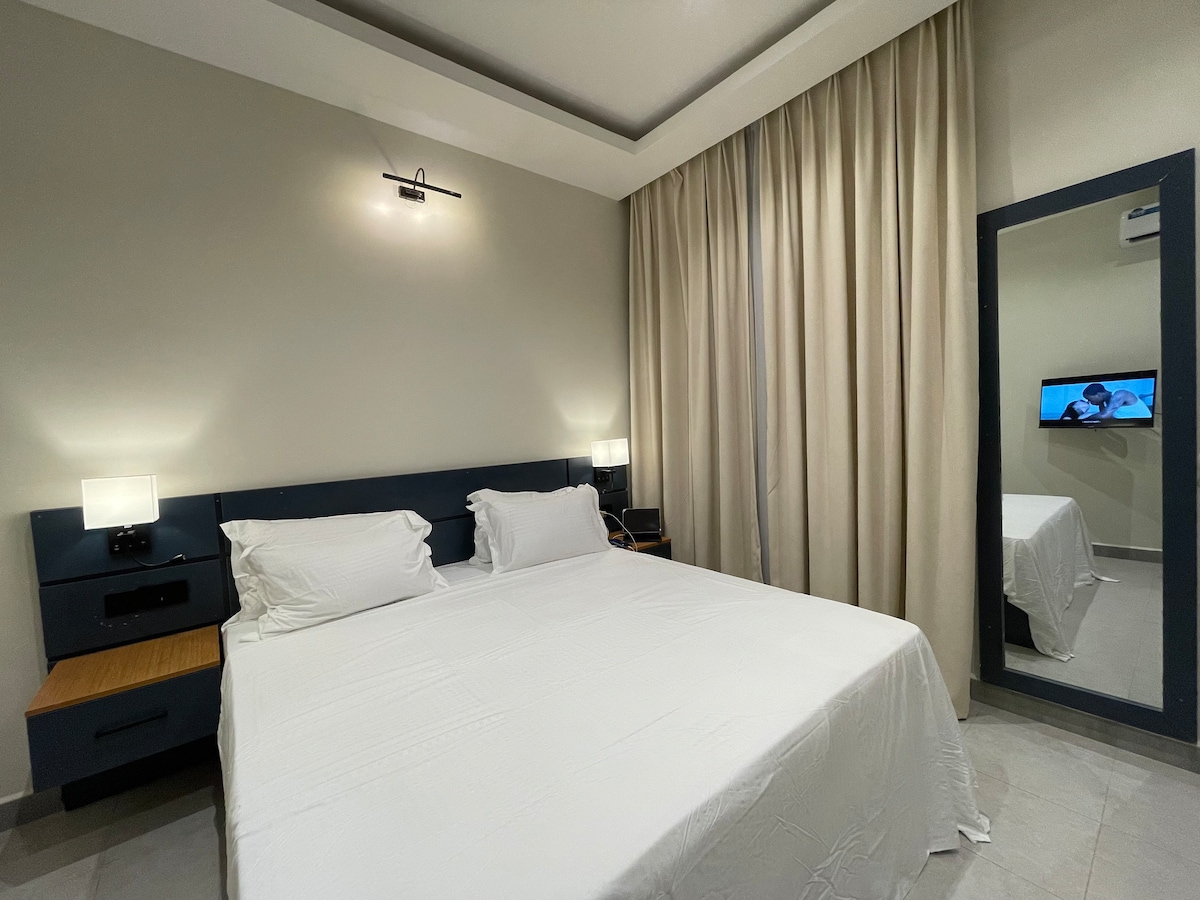 This bright and spacious villa has a double bed 4x6ft /lounge space downstairs with a kitchenette. Leading to a huge open plan bedroom with a 6ft x 7ft bed with air conditioning unit (upstairs only) and a balcony over looking Umoja Villas. We are perfectly located to the white sandy beaches 5 mins walk away and 1 minute walk to the main road. We have fibre optic internet and a generator if the electric cuts out. https://www.airbnb.co.uk/rooms/1267992992430098731?viralityEntryPoint=1&s=76