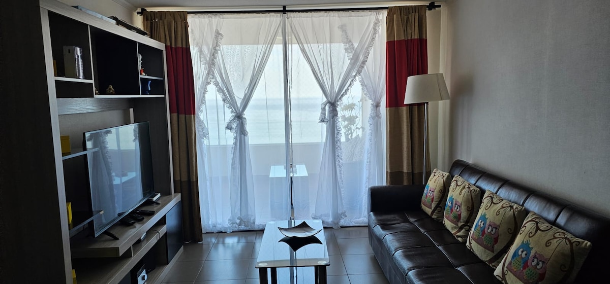 Appartement de deux chambres avec vue sur la plage de Cavancha, situé dans la région de la péninsule. Le nom du bâtiment est Royal Marine, vous pouvez le localiser sur les cartes pour avoir une référence à l'emplacement. De l'immeuble, vous pouvez marcher jusqu'à la plage de Cavancha et à la plage de Brava, il y a des restaurants, des bars, des casinos, des supermarchés et des lieux d'intérêt touristique à proximité de l'immeuble. Très bonne connectivité. Parking disponible gratuitement.