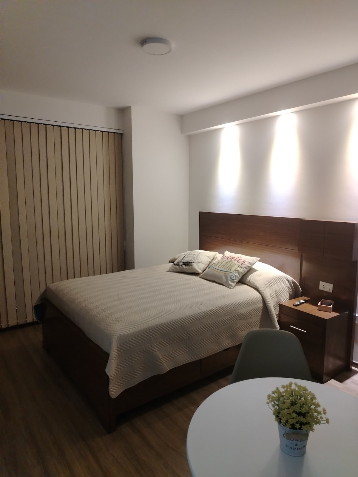 Confortable Garçonnière avec lit queen size, salle de bain privée et cuisine équipée, idéale pour des séjours courts ou longs. Profitez de vues panoramiques sur Cochabamba. Accès à la piscine le week-end (en semaine sur réservation pour 200 Bs). Barbecue disponible moyennant un supplément après confirmation. Parking non inclus, mais vous pouvez louer à un voisin. Confort, emplacement et vue en un seul endroit !