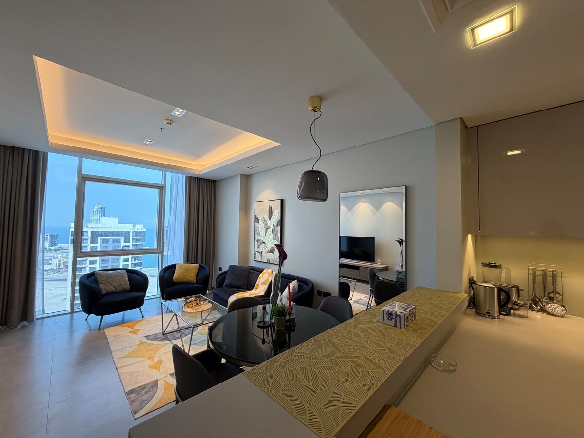 Appartement confortable avec une vue attrayante sur la mer et surplombant le centre commercial de Bahreïn. Emplacement idéal avec commerces et attractions à proximité. - À 1,2 km du centre commercial Al Aali. - À 1,3 km du centre commercial City Center. - À 1,3 km du parc aquatique Wahooo. - À 1,6 km de Seef small - À 2,4 km du centre commercial Dana. - À 2,6 km du centre commercial Bahrain Mall - À 3,8 km du fort de Bahreïn. - À 4,9 km de Bab Al Bahrain - À 5,8 km du centre commercial Moda. Cuisine entièrement équipée. Équipements : piscine, tennis, salle de sport, supérette (24h/24 et 7j/7), parking privé, buanderie, télévision, Wi-Fi, fer à repasser, coffre-fort.