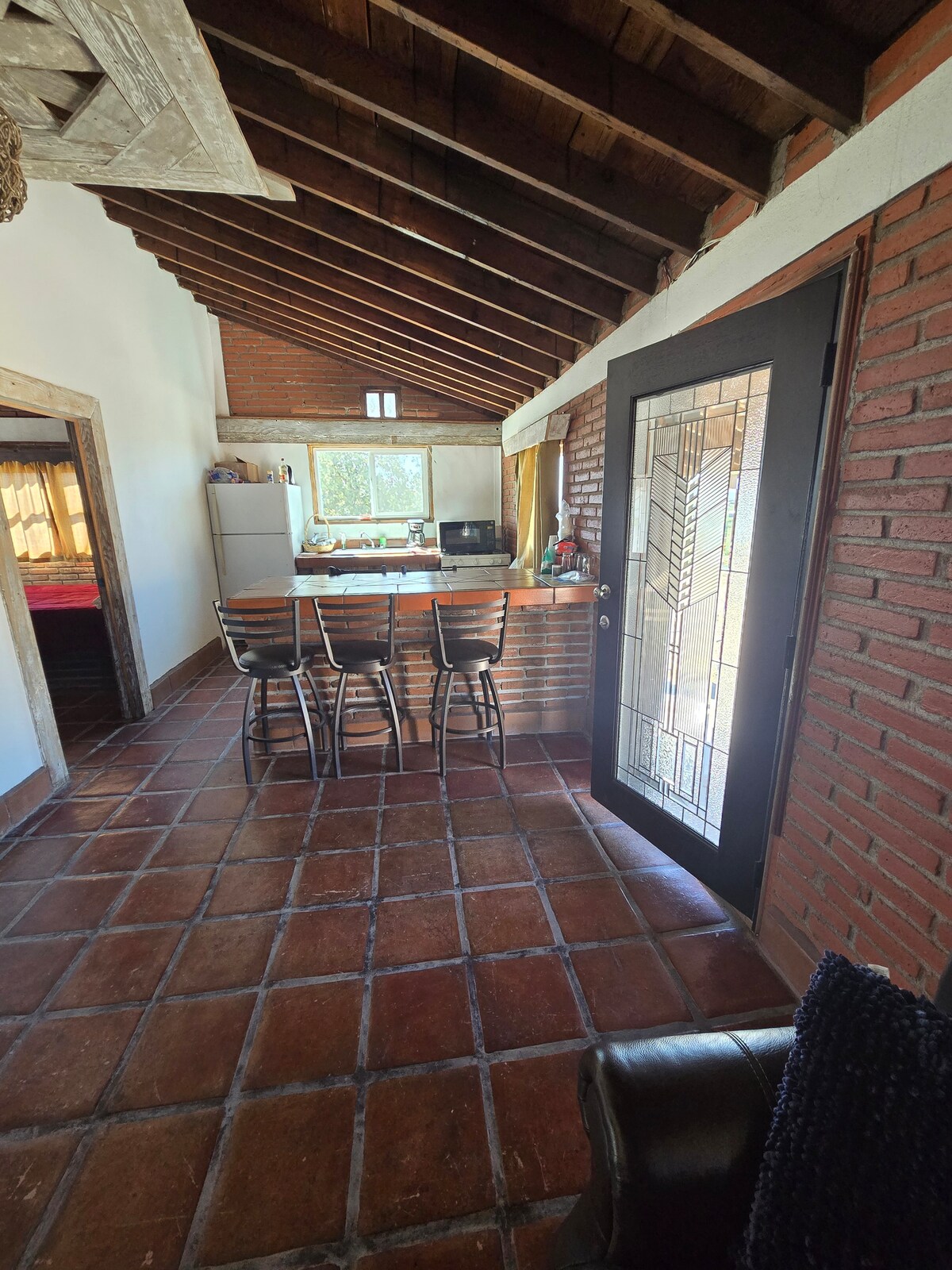 Za Little UFO is a unique desert retreat in La Rumorosa, ideal for couples or small families of up to four. This main house features two beds, one bath, and breathtaking panoramic views in every direction. Enjoy quiet moments by the indoor fireplace or gather outdoors with a fire pit, fireplace, grill, and multiple seating areas. Wake to endless skies, golden sunsets, and total serenity—where the views are the experience.