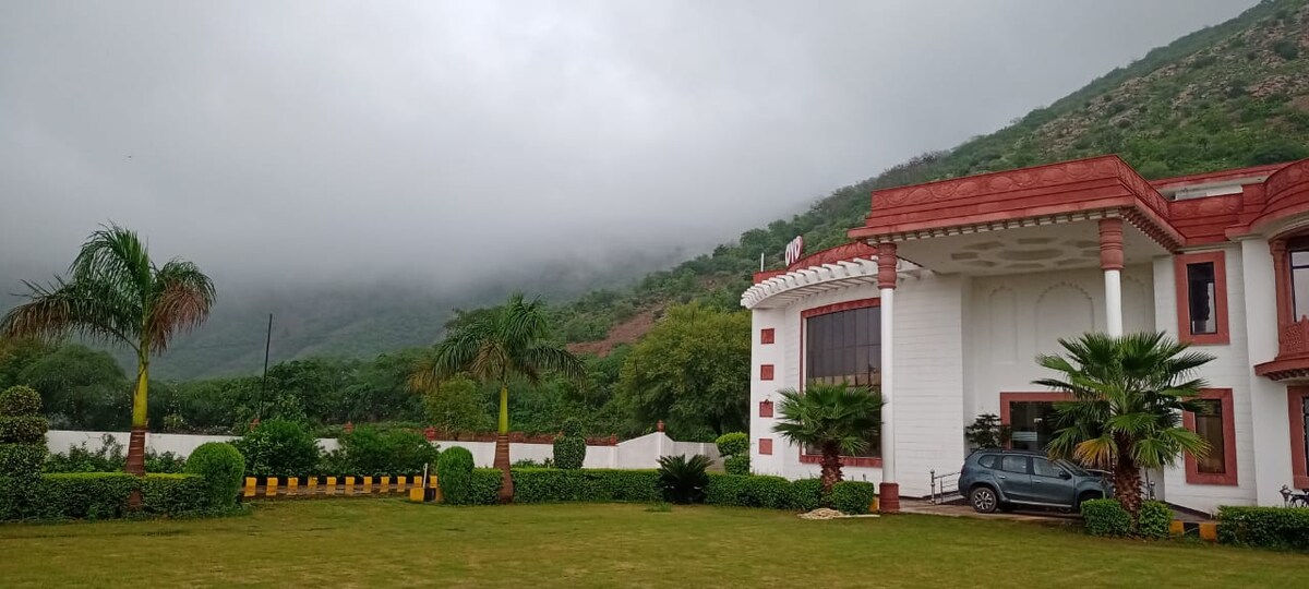 Between the valleys, Sariska Bliss Farm🕊️– Perfect for - Family time, peaceful views, and nights under the stars.⭐✨ - Complete gated 🚪 society. One of the few property with a swimming pool 🏊♀️ with an amazing view of valley.