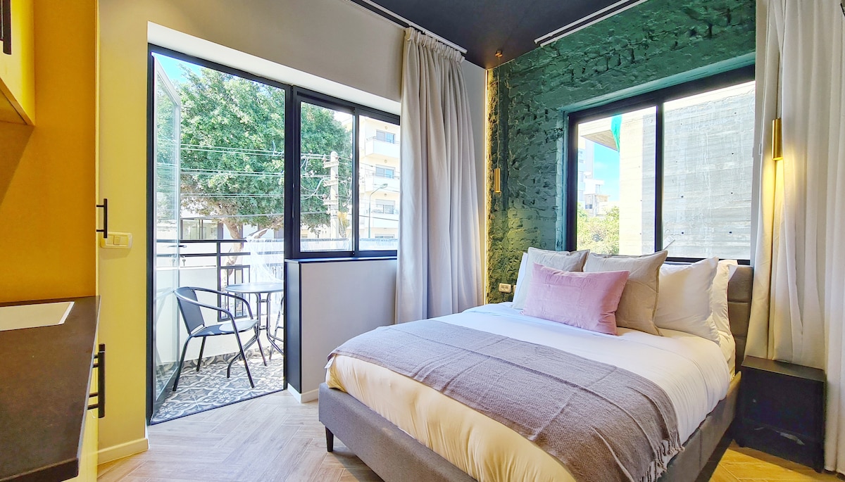 L'appartement de luxe vert fait partie d'un BÂTIMENT PRIVÉ, qui ne comprend que 4 appartements uniques dans le meilleur emplacement dans le centre culturel et touristique de la ville. La combinaison de l'ancien et du nouveau, le haut plafond, le design et le mobilier haut de gamme rendent l'appartement unique et spectaculaire. Depuis le balcon, vous pouvez jeter un coup d'œil et choisir entre calme et occupé. C'est l'escapade TLV parfaite pour les couples, les voyageurs d'affaires et les personnes qui apprécient la qualité. ABRI DEVANT LE BÂTIMENT