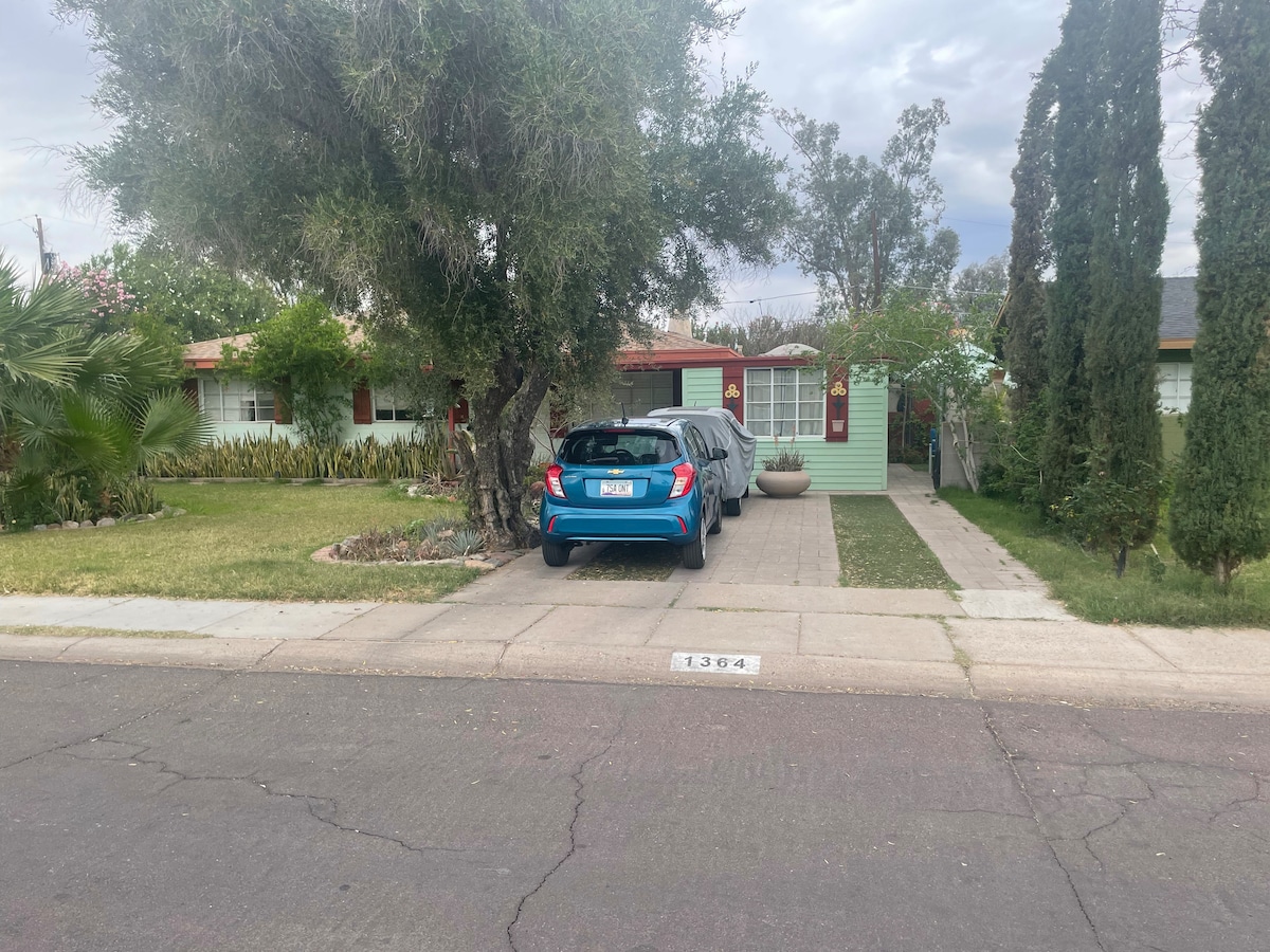 Merci d'avoir regardé la Copper State Casita. Notre casita inspirée du désert chic est située au centre et à proximité du quartier Arcadia. Niché dans un quartier plus ancien, c'est un studio de 400 pieds carrés avec son propre patio privé. Tout le confort d'un chez-soi dans un petit format. À quelques minutes en voiture de l'aéroport, de Tempe, de Scottsdale et du centre-ville de Phoenix. Idéale pour les couples, les voyages d'affaires, les amis ou les petites familles. À quelques minutes en voiture des sentiers, des commerces et de nombreux restaurants populaires.