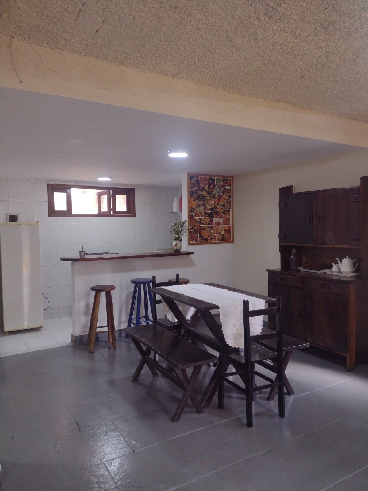 Casa anexa a casa principal, com total privacidade, sendo um loft com três camas de casal, cozinha e banheiro e um quarto para casal com banheiro. Cozinha grande com fogão a lenha, churrasqueira, fogão industrial, mesa grande de refeiçoes, uma geladeira e um freezer vertical, balcão e mesas ao ar livre. Ideal para pessoas que gostam de lugares com muita natureza, tranquilidade para curtir e aproveitar com coisas rurais.