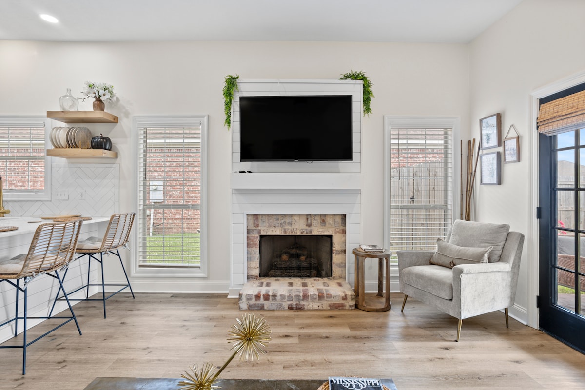 Ferme récemment rénovée à l'emplacement idéal. Cuisine entièrement approvisionnée, buanderie sur place, rassemblement en plein air avec foyer. La salle de jeu dispose d'une table de billard, de jeux d'arcade, d'un karaoké et d'un très grand projecteur. Emplacement idéal à moins de 15 minutes du centre-ville de Jackson, du centre commercial, des Mississippi Braves, de l'amphithéâtre de Brandon, des terrains de golf, de l'aéroport JAN, de Tesla, de plusieurs musées et plus encore. Si vous avez besoin d'une voiture, nous pouvons vous aider par l'intermédiaire de Turo. Envoyez-nous un message pour les disponibilités.