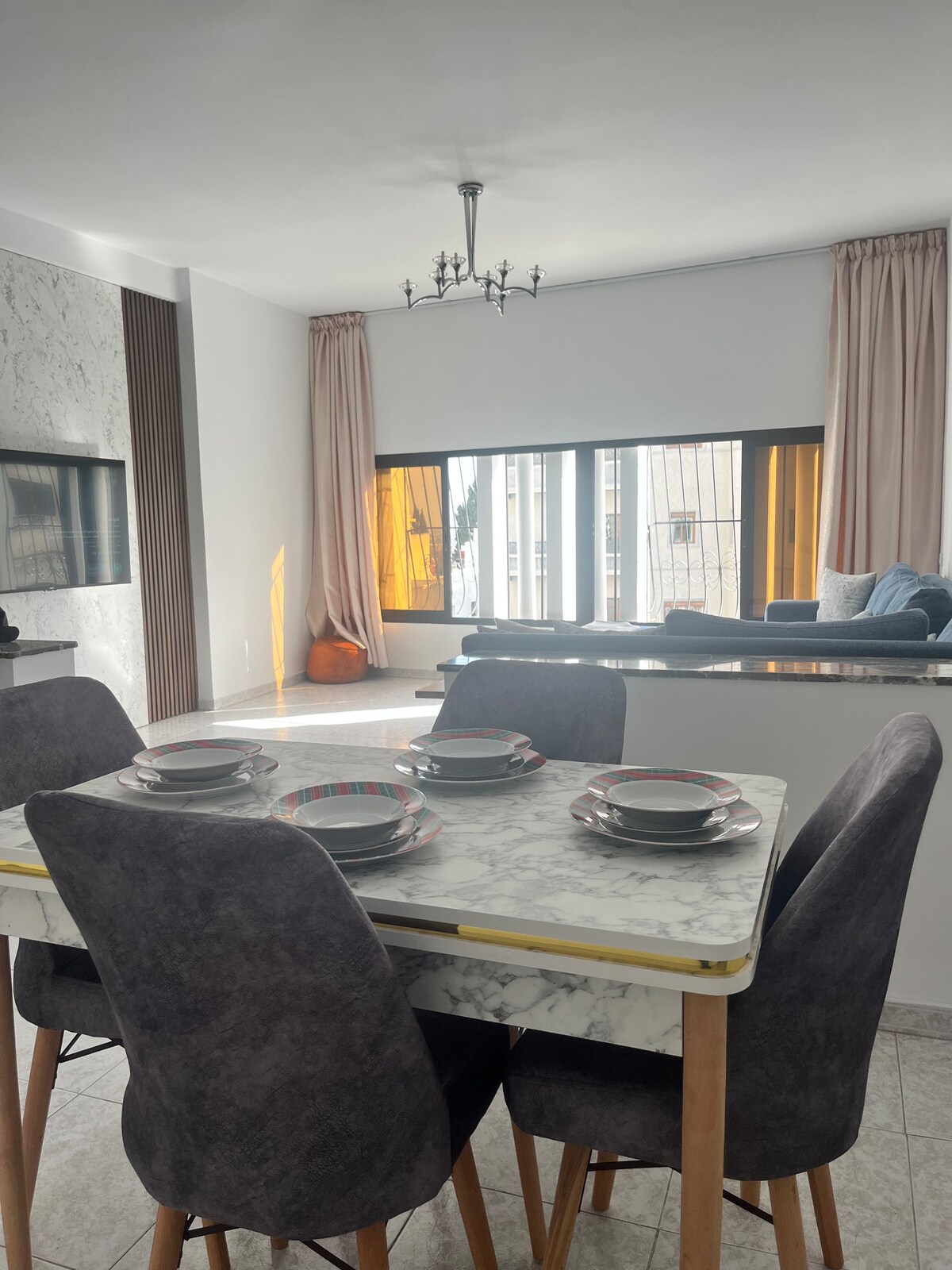 Lujoso Apartamento Reformado a 3 Minutos de la Playa en Martil Disfruta de este elegante apartamento, recién reformado y ubicado a solo 3 minutos a pie de la playa. Perfecto para parejas, familias o amigos, ofrece una sala de estar moderna, cocina equipada y cómodos dormitorios. Con aire acondicionado, Wi-Fi y todas las comodidades necesarias. A un paso de restaurantes, tiendas y atracciones locales. Ideal para relajarte y disfrutar de lo mejor de Martil. Reserva tu estancia y disfruta!