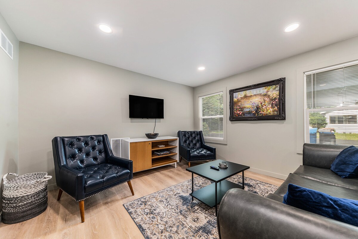 Partie duplex, tout Kalamazoo... c'est le ZooPlex ! Nous sommes faciles à trouver à seulement 1,5 miles de l'US-131. Une fois que vous serez ici, vous ne serez pas déçu. Quatre places de stationnement dédiées hors de la rue et un jardin de fleurs sauvages vous accueillent à votre arrivée. En entrant, vous serez plongé dans le confort avec des équipements modernes mis à jour et une expérience unique de chambres sur le thème de Kalamazoo ! Wi-Fi rapide, télévision connectée 55", cour arrière sereine entièrement clôturée avec des arbres matures apaisants et terrasse privée pour 6 personnes.