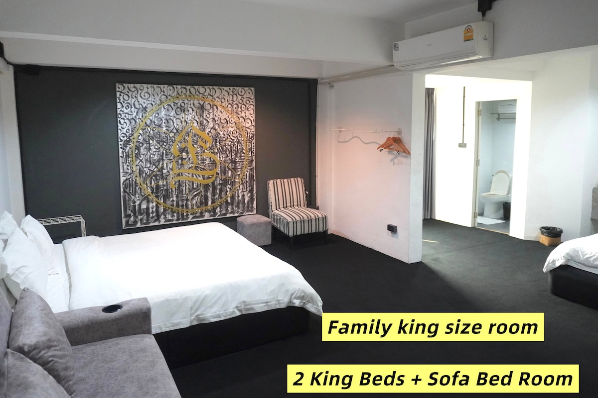 (2張特大雙人床40㎡+沙发床尊貴套房)清邁市中心機能便利泰式藝術風格民宿