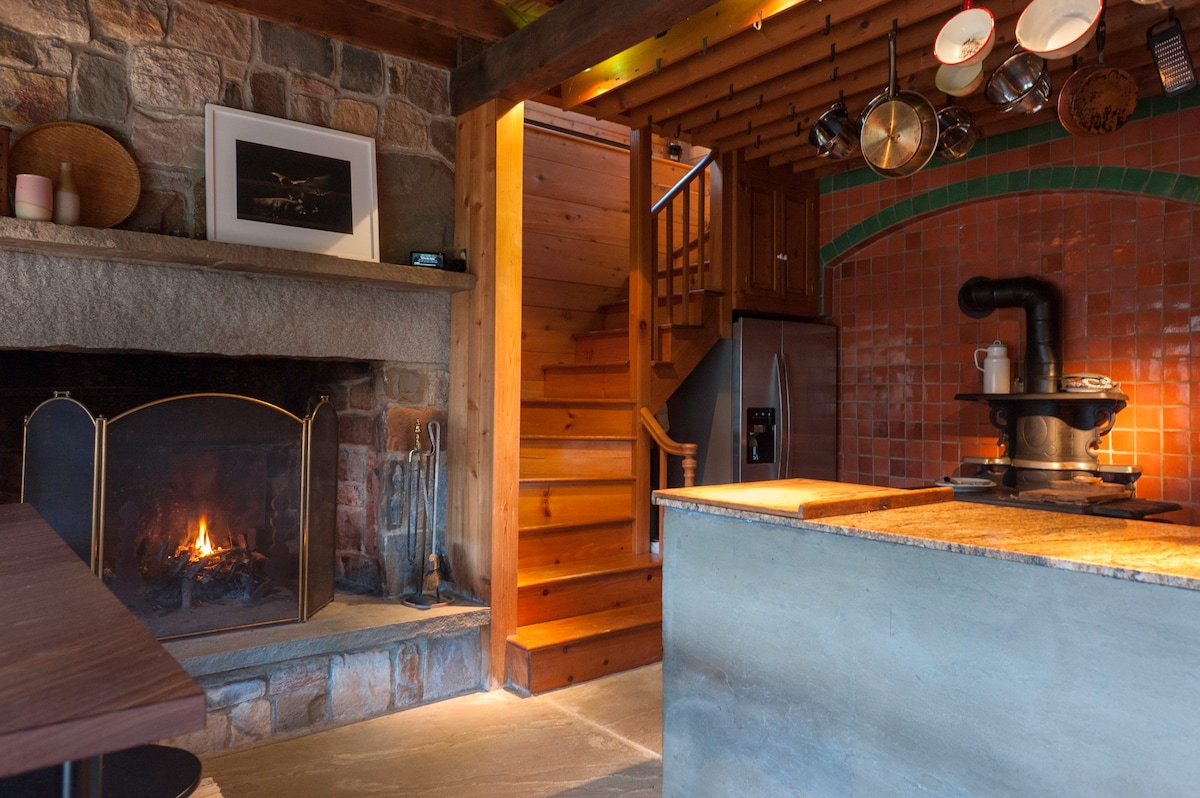 Bienvenue au Cottage at the Barrington House ! La Barrington House est nichée dans les montagnes sereines des Berkshires, qui ont longtemps été un sanctuaire pour les citadins fatigués à la recherche d'espace pour respirer, une retraite parfaite pour les artistes, les écrivains et les penseurs ! Son vaste terrain offre une vue imprenable sur les vallées luxuriantes et les sommets lointains, tandis que l'intérieur dispose d'une cheminée, d'un coin lecture confortable et de fenêtres illimitées qui invitent le monde naturel à l'intérieur.