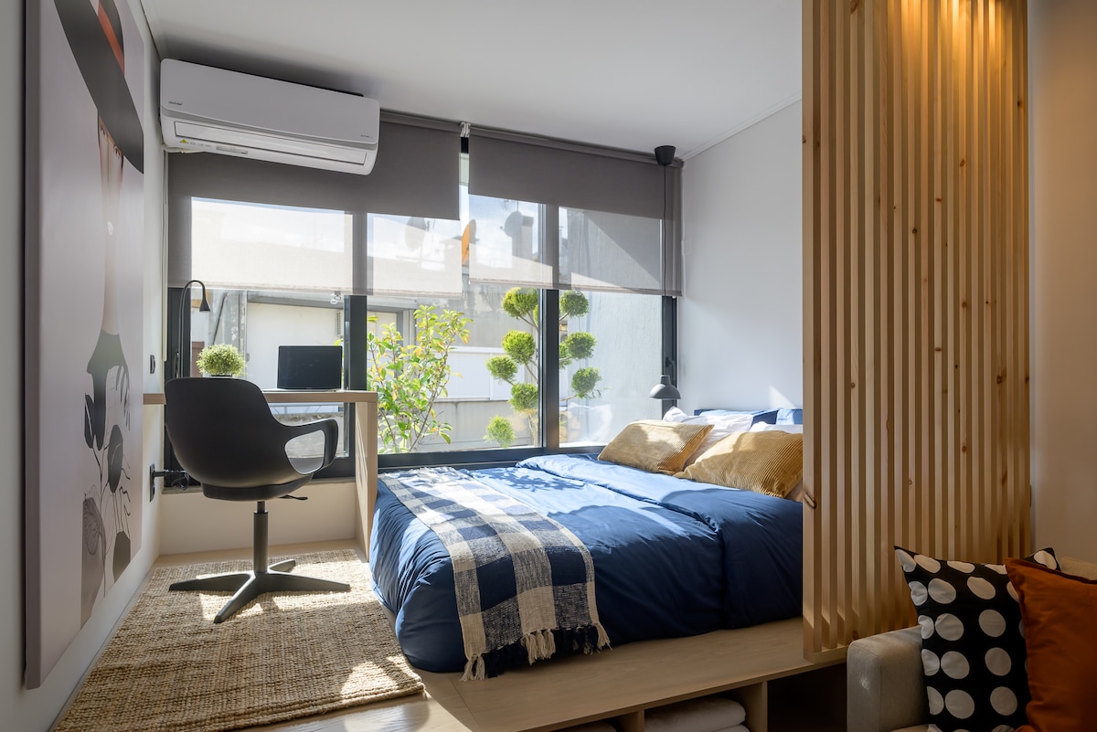 Studio spacieux avec jardin et vue sur la ville.
