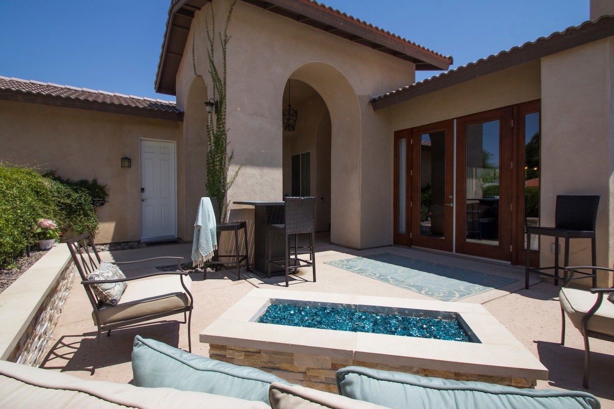 Nichée dans le décor des magnifiques montagnes de San Jacinto, notre retraite offre une escapade de luxe entourée de palmiers et de ciel bleu clair au cœur de la vallée de Coachella. Idéalement situé près de Palm Springs, Acrisure Arena, Joshua Tree, Indian Wells Tennis Garden, PGA West Stadium Course, El Paseo Shopping District, Agua Caliente Casino et Empire Polo Club. Ce sanctuaire offre un accès rapide et central aux vastes merveilles du désert et aux expériences de la ville environnante.