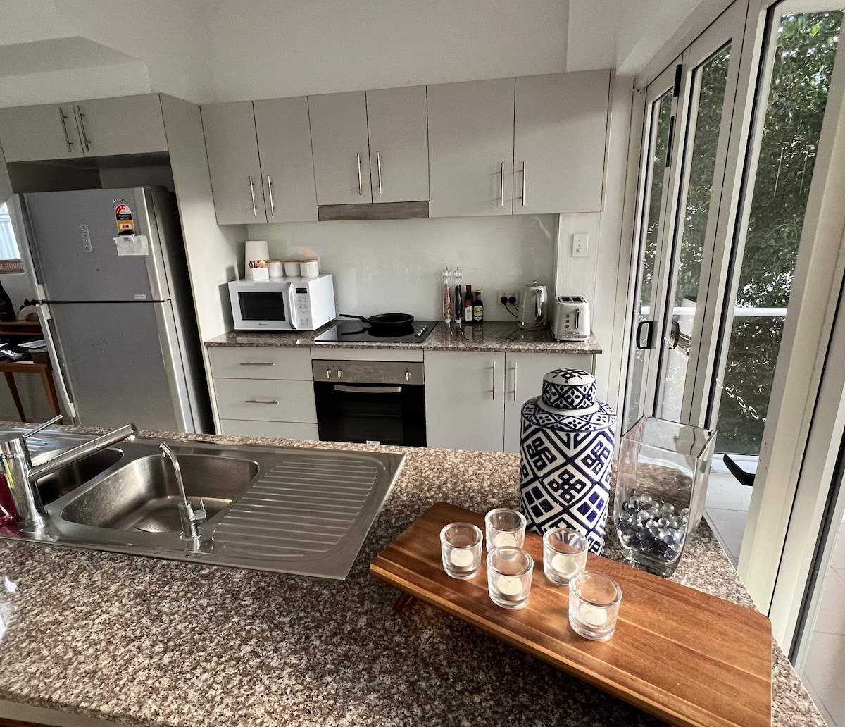 Wake to filtered sunlight, pool views and birdsong in this light-filled granny flat. Elevated among the palms, the space feels bright, breezy and comfortably private - a relaxed tropical retreat. Located in leafy Railway Estate, you’re walking distance to QCB Stadium and under 10 minutes’ drive to the city and the Strand. The entire granny flat is yours, with private access, wifi, well-equipped kitchen, living area with netflix, queen bedroom and ensuite with rain shower and washing machine.