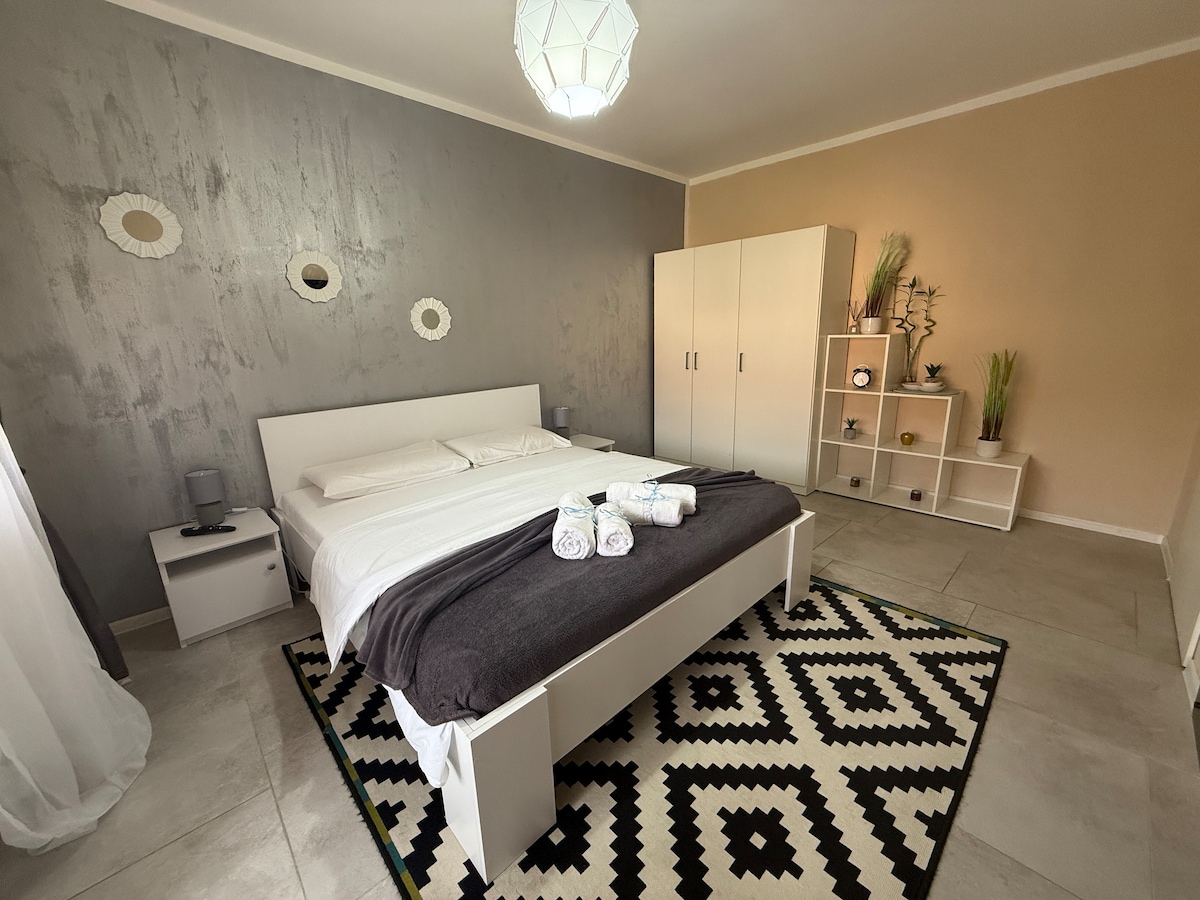 Appartement neuf lumineux avec un design moderne et un parking gratuit. Elle est située à l'entrée de Timisoara, dans le quartier de la station-service Esso. L'appartement est équipé de : - Cuisine entièrement équipée avec tout le nécessaire : plaque de cuisson électrique, four, lave-vaisselle, réfrigérateur, machine à café et vaisselle. - Lavabo ouvert où les voyageurs peuvent profiter d'un film, sur un canapé confortable, sur une télévision intelligente - Chambre avec lit King Size ; - Bébé avec cabine de douche et lave-linge avec sèche-linge.