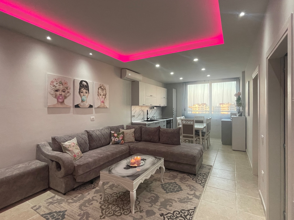 🌞 Évadez-vous au soleil, dans un appartement élégant 🌊 avec vue sur la mer, à quelques pas de la plage, où le bruit des vagues vous accueille chaque matin et où des couchers de soleil 🌇 dorés illuminent votre balcon chaque soir. 💫 Que vous rêviez d'une escapade paisible, d'une retraite 💑 romantique ou d'un havre de travail à 💻 distance, ce séjour en bord de mer offre tout ce dont vous avez besoin pour vous détendre, vous ressourcer et vous sentir chez vous à Durrës.
