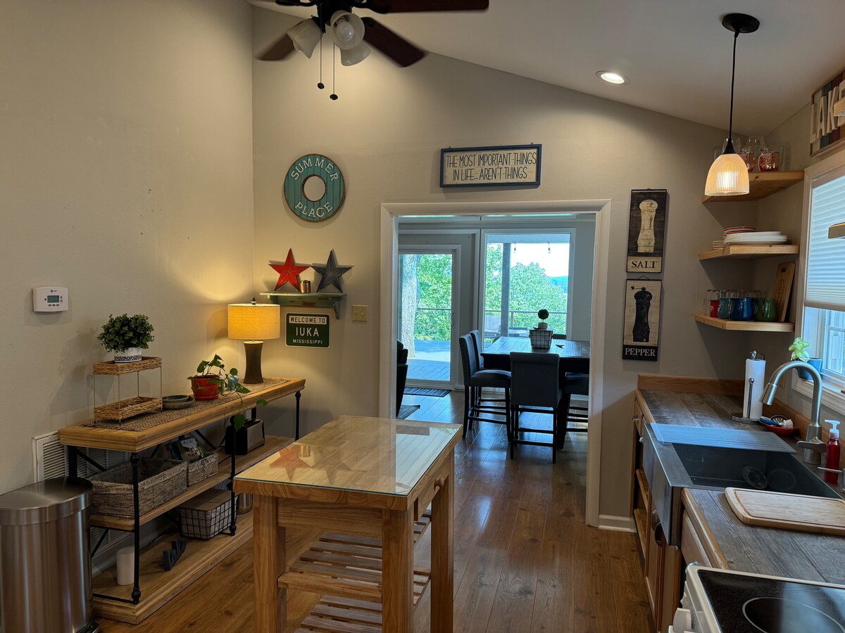 Bienvenue dans notre petite retraite rustique ! Notre cabane a été rénovée en utilisant de nombreux matériaux réutilisés d'une ancienne maison. Les planches à rainure et languette du loft et de la cage d'escalier ainsi que les portes intérieures ont presque un siècle. Que vous voyagiez pour le travail, que vous rendiez visite à votre famille, que vous pêchiez lors d'un tournoi à proximité ou que vous recherchiez simplement une petite escapade tranquille, nous espérons que vous apprécierez votre séjour et que vous vous sentirez comme chez vous.