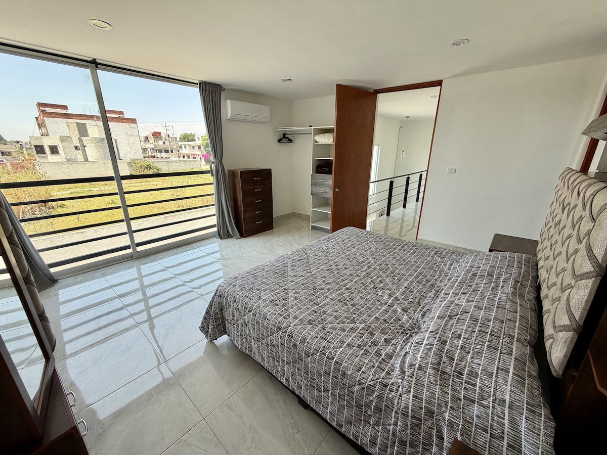 Découvrez notre studio au cœur de Tlaxcala, à seulement 5 minutes du centre et à côté du centre commercial ! Parfait pour les familles ou les voyageurs d'affaires, avec un espace pour 3 voitures, une cuisine équipée, une terrasse avec vue panoramique, une connexion Internet haut débit, une télévision, un barbecue, un système de son surround, un bureau et un dressing. Idéal pour le confort et le divertissement. Réservez maintenant et vivez une expérience incomparable à Tlaxcala !