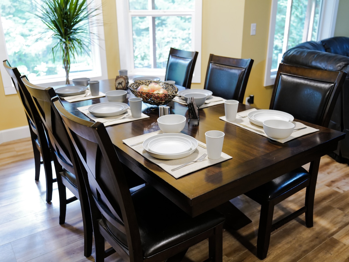Sirotez du vin sur la terrasse arrière tout en regardant la rivière sinueuse couler près de The River's Nest, une maison familiale méticuleusement présentée, à distance de marche du centre-ville historique de Snoqualmie et à 30 miles de Seattle. Cuisinez dans une cuisine entièrement équipée et dînez avec vue sur la rivière. Promenez-vous devant le parc municipal avec ses équipements sur le chemin de la ville pour faire du shopping, dîner et vous divertir ou conduisez 5 minutes jusqu'aux attractions locales ; dégustation de vin, casino, golf, magasins d'usine, randonnée et chutes de Snoqualmie !
