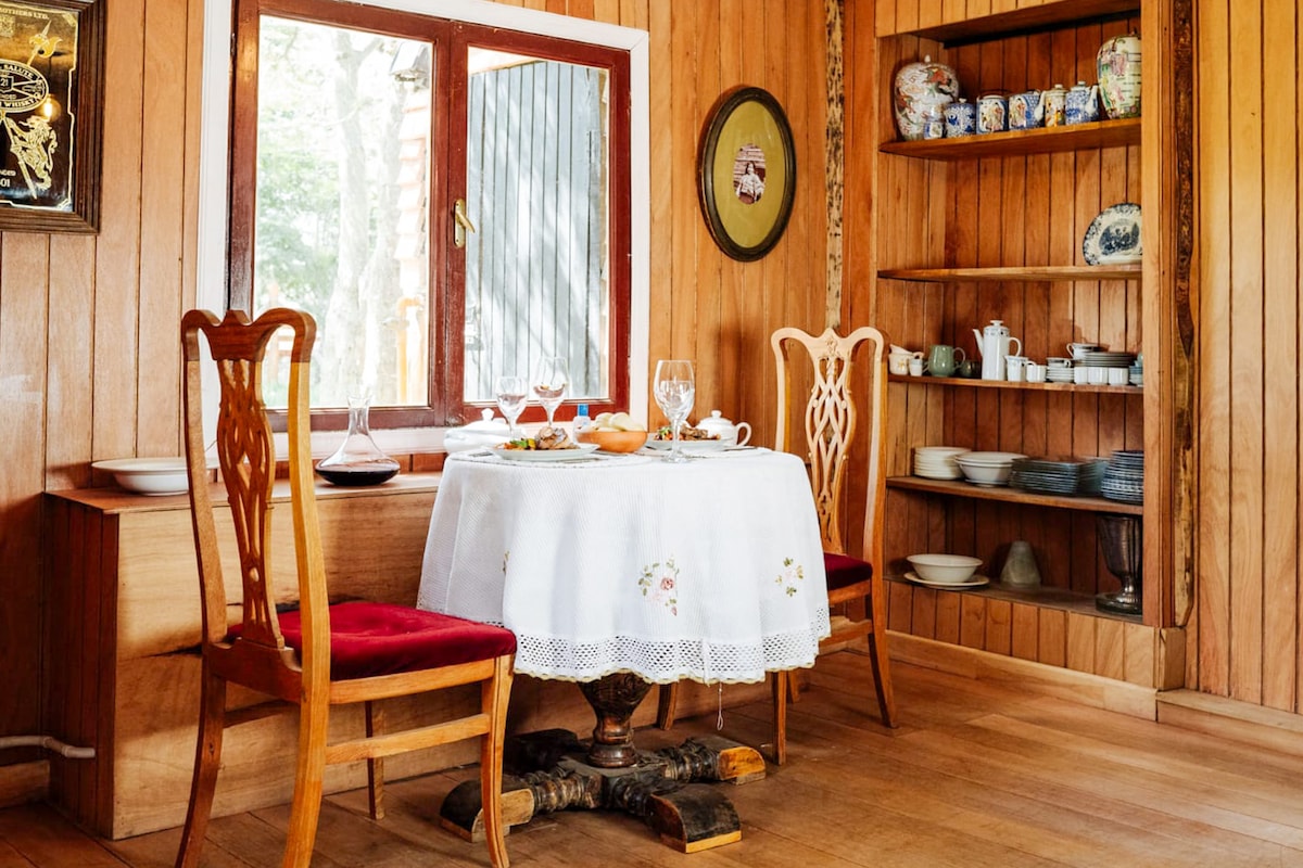 Refugio íntimo para dos en Tolhuin, rodeado de bosque y a pasos del Lago Fagnano. Desayuno incluido, patio con fogata (con protocolo) y atención cercana para que te ocupes solo de disfrutar. A 1 hora de Ushuaia: ideal para explorar de día y volver a descansar en naturaleza. Nota: si ves fotos iguales en otro anuncio de baños/comedor/patio, es porque tenemos un anuncio por cada habitación dentro del mismo alojamiento.
