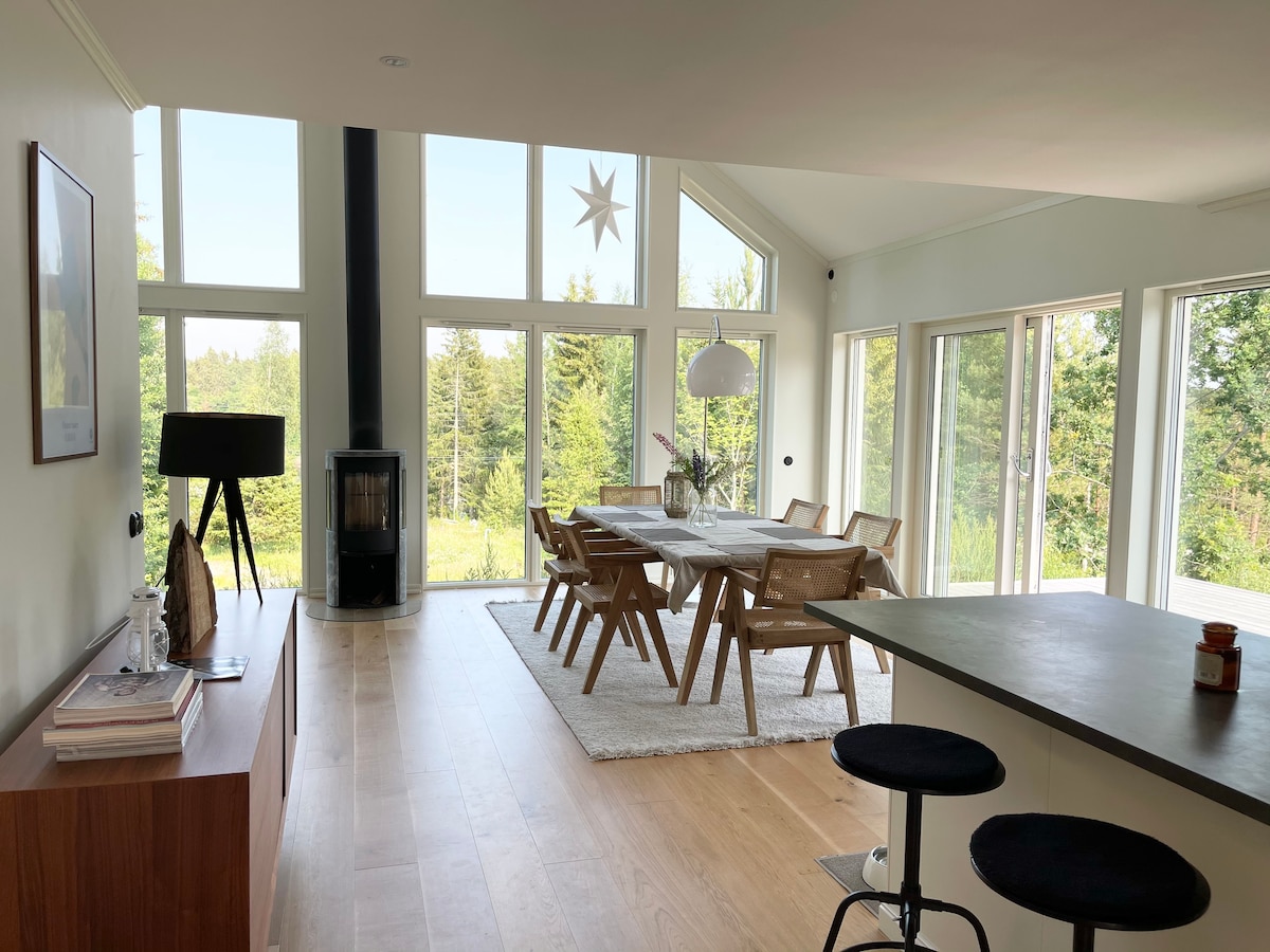 Bienvenue dans notre belle maison à la campagne, sans voisins d'à côté, à l'exception de la forêt. Une courte promenade vous emmène à un lac calme et à une belle entrée de mer, pour se baigner ou simplement se détendre au bord de l'eau. La maison dispose de tout le confort moderne, d'un plan d'étage ouvert et de grandes fenêtres qui font entrer l'extérieur. Il y a également un sauna privé. Particulièrement adapté aux familles : il y a des jouets, un trampoline, des balançoires, une chaise haute et un lit bébé pour rendre votre séjour facile et amusant. Profitez de la paix et de la tranquillité !