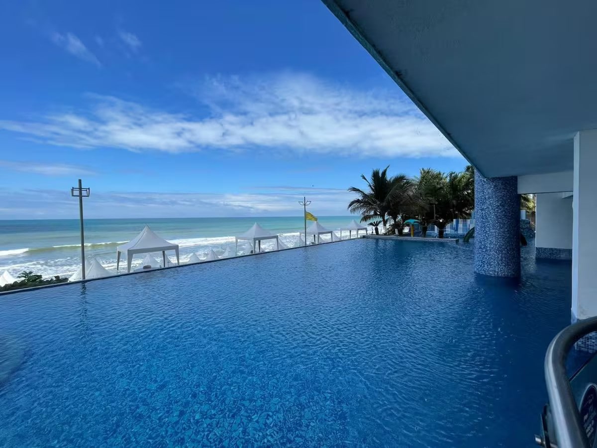 Créez des souvenirs inoubliables dans ce logement unique et familial. Excellent appartement face à la mer avec une vue incroyable 3 chambres, 2 salles de bains, meublé pour vos vacances ! pour 6 personnes au top de Tonsupa - Esmeraldas : DIAMOND BEACH ! ! ! Wi-Fi zone communale SmartTV, tout pour que vos vacances soient spectaculaires !. Piscines 🏊♀️- hydromassage - courts - gymnase 🏋️♀️- ascenseur - parking - front de mer 🌊 - entrée privée à la plage 🏝